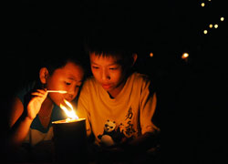 | Trẻ em mệt mỏi trong những ngày cúp điện,các bậc phụ huynh cũng mệt theo. | Cúp điện, hai cậu bé này phải học bài dưới ánh sáng nến |